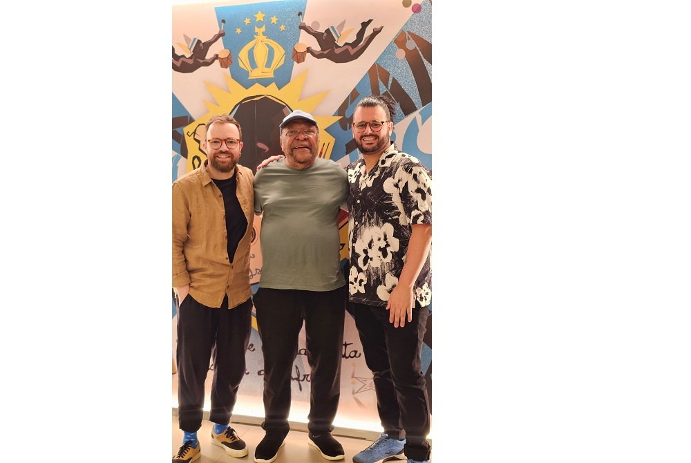 O cantor e compositor Martinho da Vila, presidente de honra da Unidos de Vila Isabel, esteve na manhã desta quinta-feira (23) no barracão da escola, onde foi recebido pelos carnavalescos Gabriel Haddad e Leonardo Bora. Durante a visita, Martinho conheceu parte do desenvolvimento do desfile e recebeu, das mãos da dupla, o croqui da fantasia que usará no Carnaval 2026.